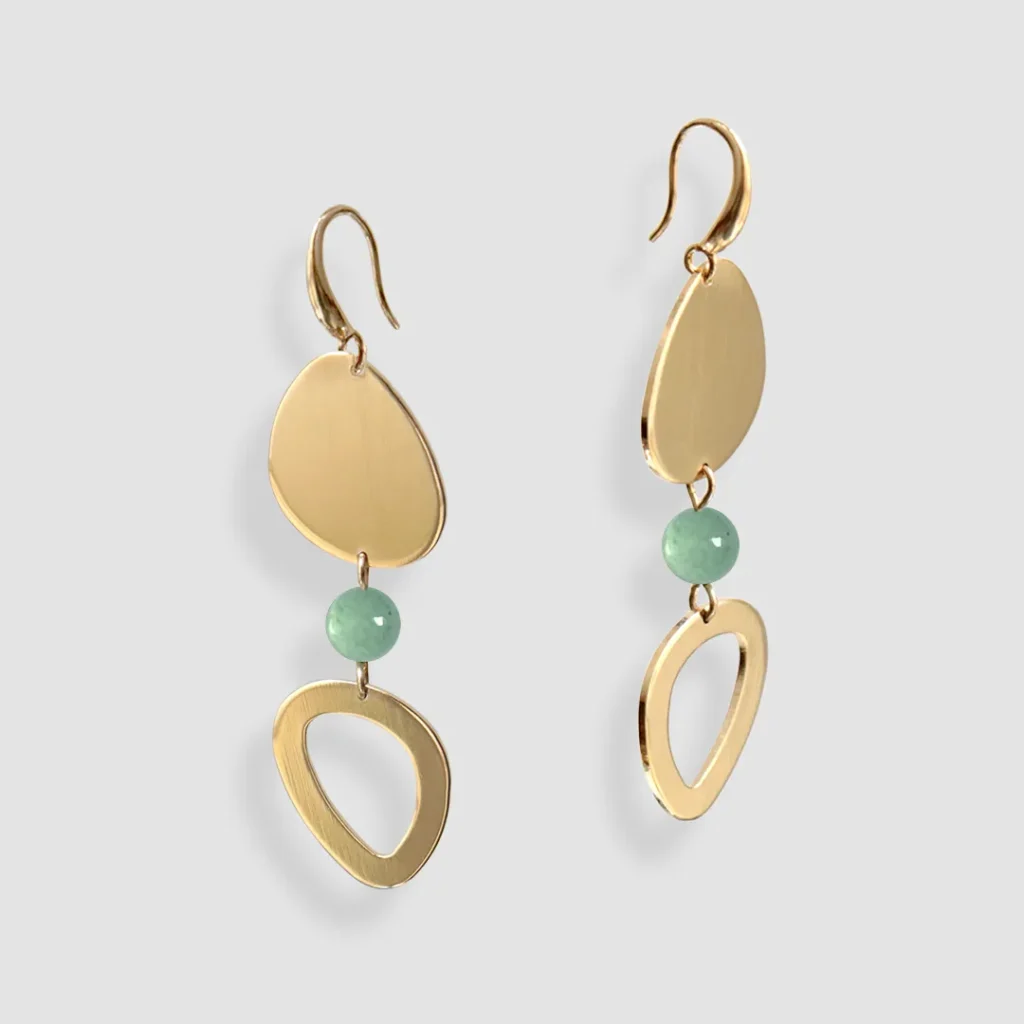 L’aventurine se prête particulièrement bien à différents styles de boucles d’oreilles. Que ce soit des créoles, des pendants ou des clous d’oreilles, cette pierre apporte une touche de couleur et de sophistication. Les boucles d’oreilles avec une chaîne et une aventurine peuvent être particulièrement élégantes, car elles mettent en valeur la pierre tout en ajoutant du mouvement et de la dynamique au bijou.