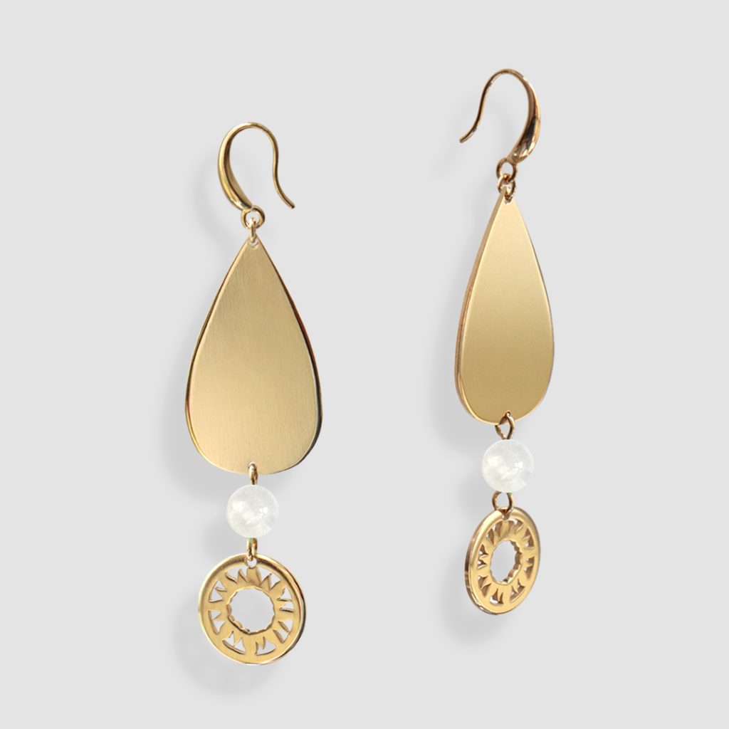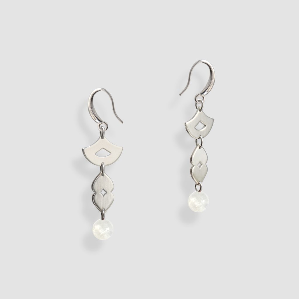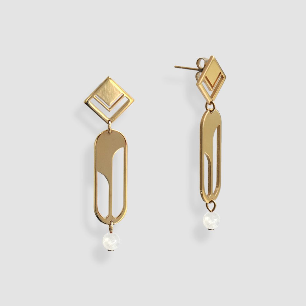 Boucles d’oreilles géométriques avec pierre de lune