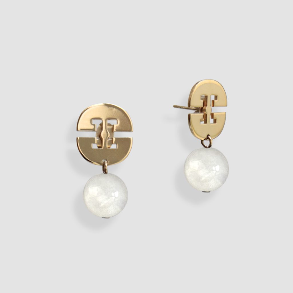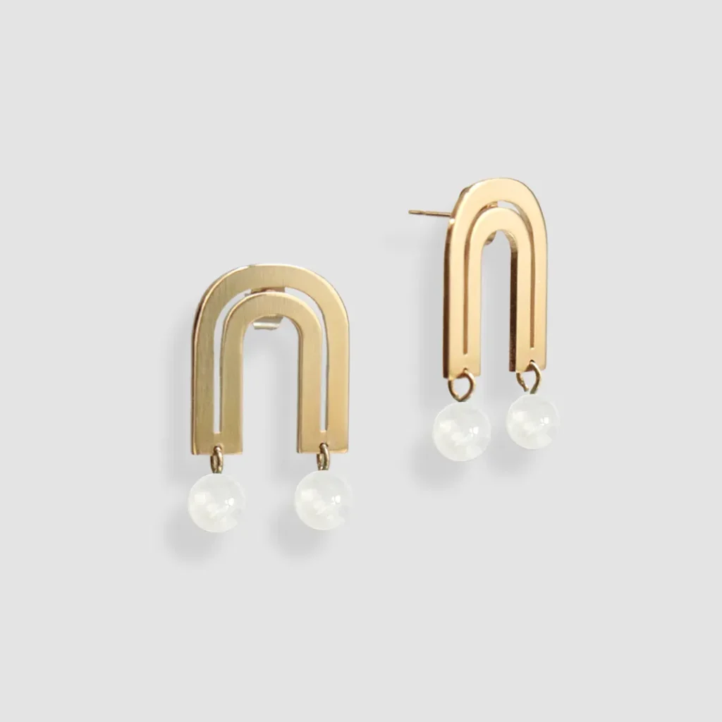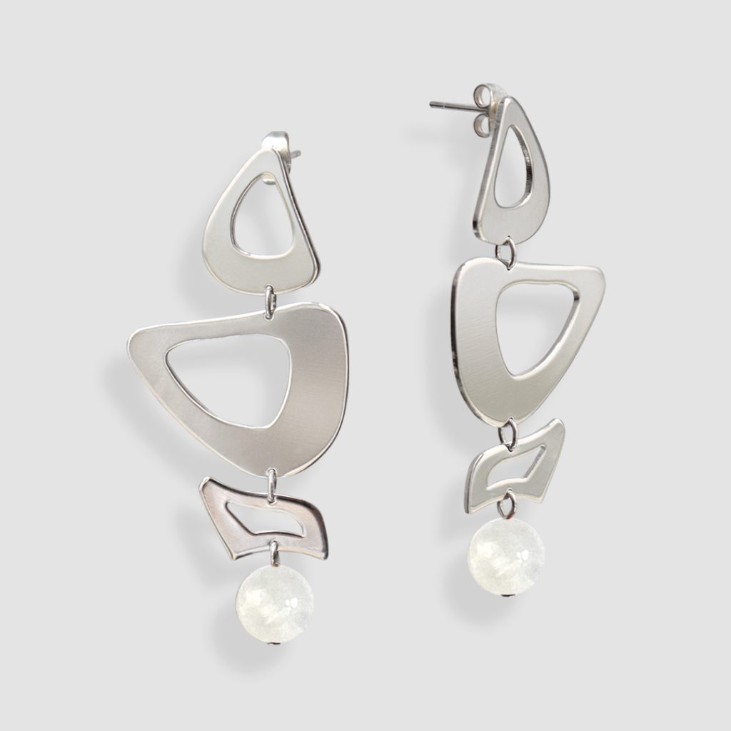 Boucles d’oreilles géométriques avec pierre de lune