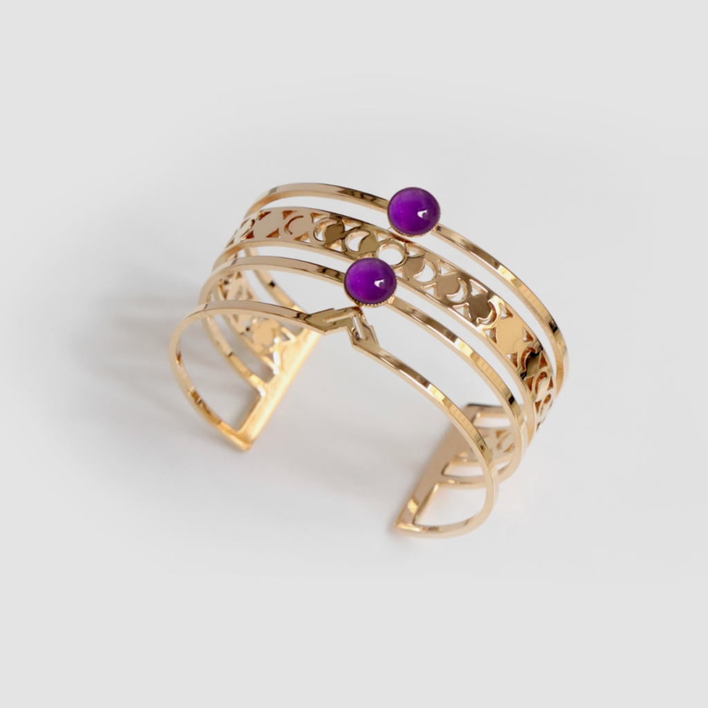 Plus tard, durant le Moyen Âge, l’améthyste était considérée comme une pierre sacrée, liée à la spiritualité et à la pureté.D était associée à l’humilité et à la dévotion. Les bracelets en améthyste étaient souvent portés par les évêques et les membres du clergé comme symboles de leur foi et de leur connexion divine.