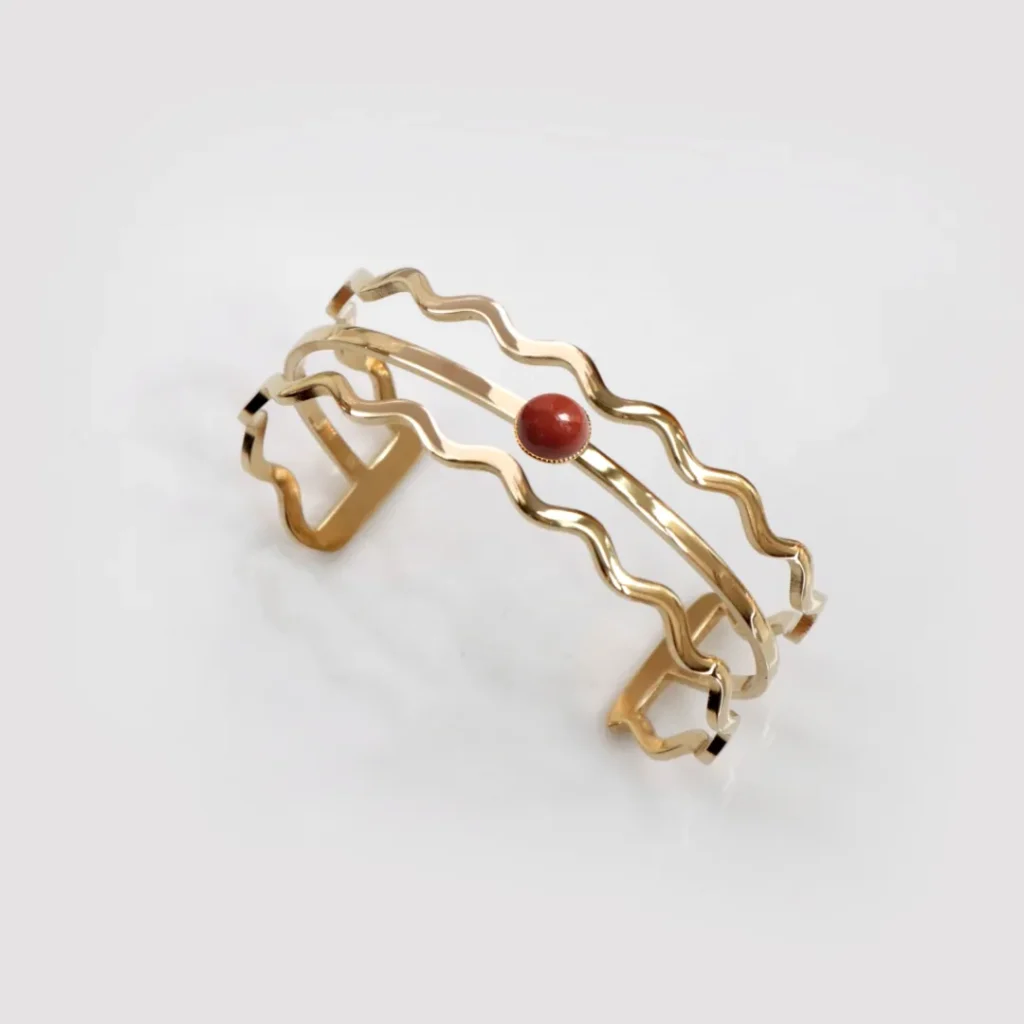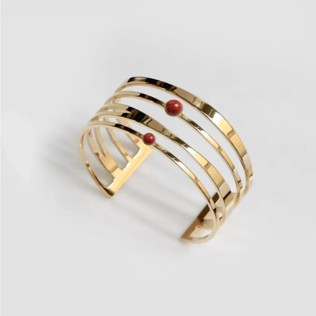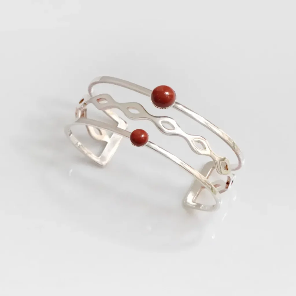 1. Les bracelet style art-déco : Les bracelets de style art déco utilisent généralement des formes plus complexes que des bijoux classiques. Il peut donc être intéressant de les associer à des pierre aux couleurs vives comme le jaspe, qui viendront souligner leur design unique.