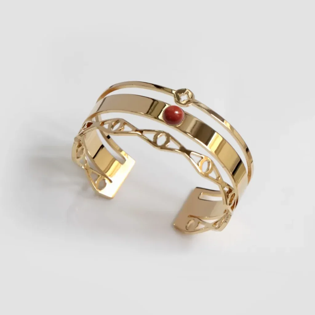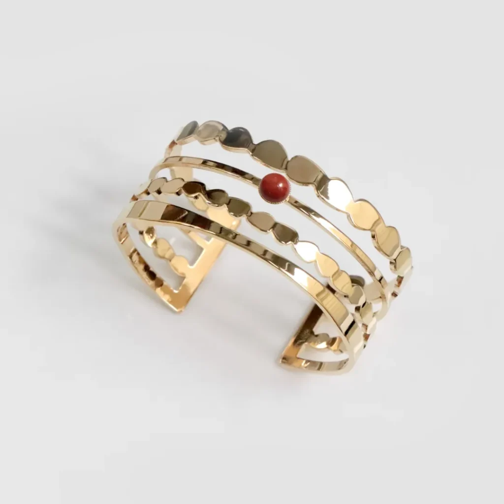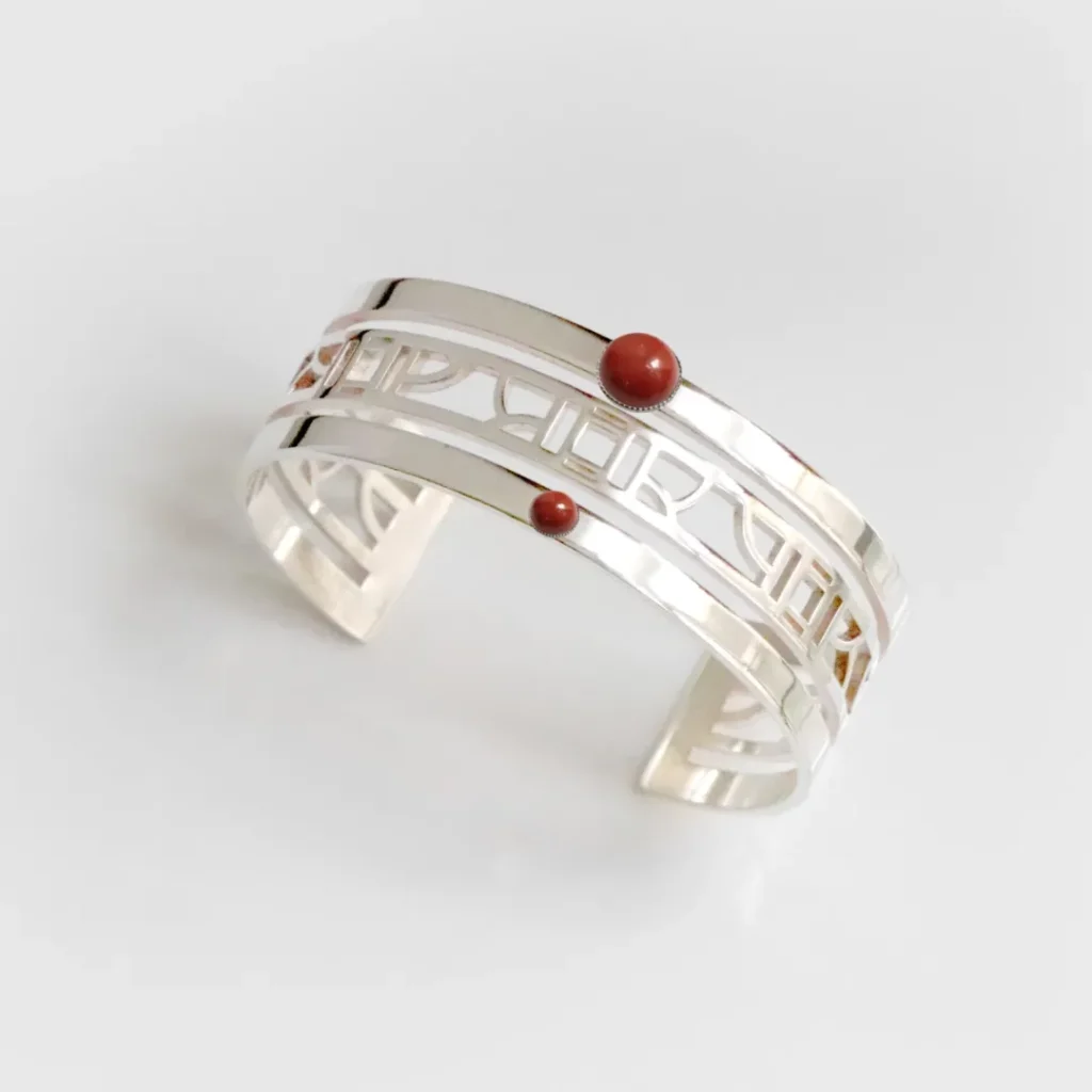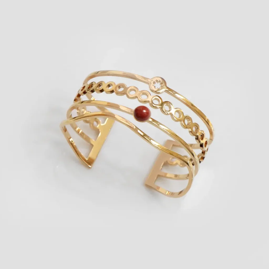 1. Les bracelet style art-déco : Les bracelets de style art déco utilisent généralement des formes plus complexes que des bijoux classiques. Il peut donc être intéressant de les associer à des pierre aux couleurs vives comme le jaspe, qui viendront souligner leur design unique.