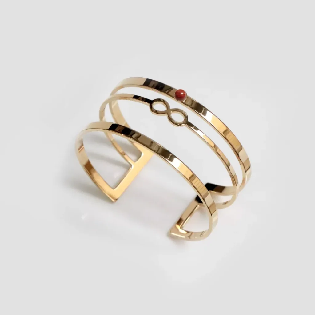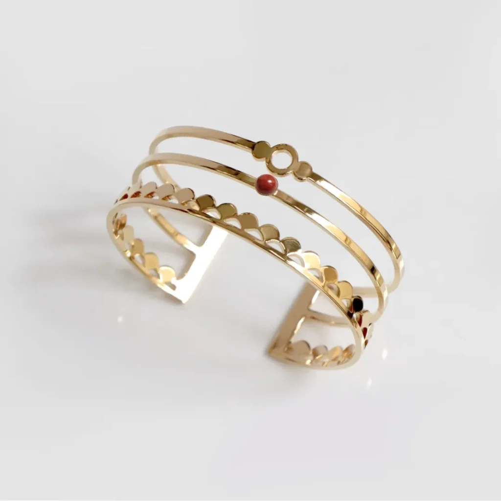 3. Les bracelets style géométrique : Les bracelets géométriques utilisent des formes simples et modernes, comme des cercles, des triangles ou des rectangles.